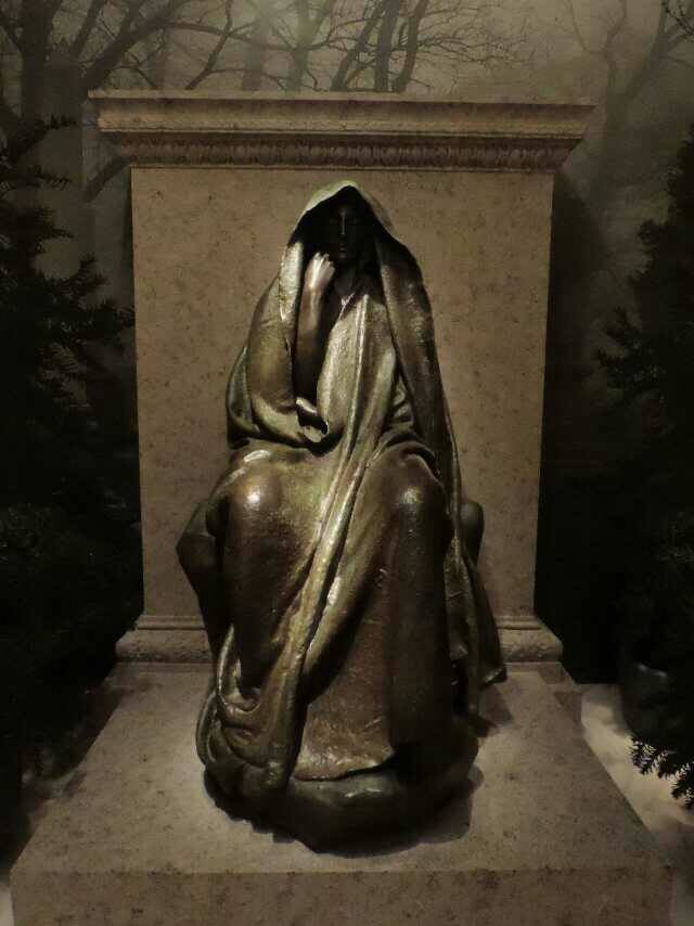 The writer, Henry Adam, sponsors this sculpture to memorize his wife who committed suicide. But Henry Adam never admitted that the work was done for her. The sculptor shows the relationship between life and death through this work. He intentionally blurs the gender – it is hard to tell whether this is a male or a female.