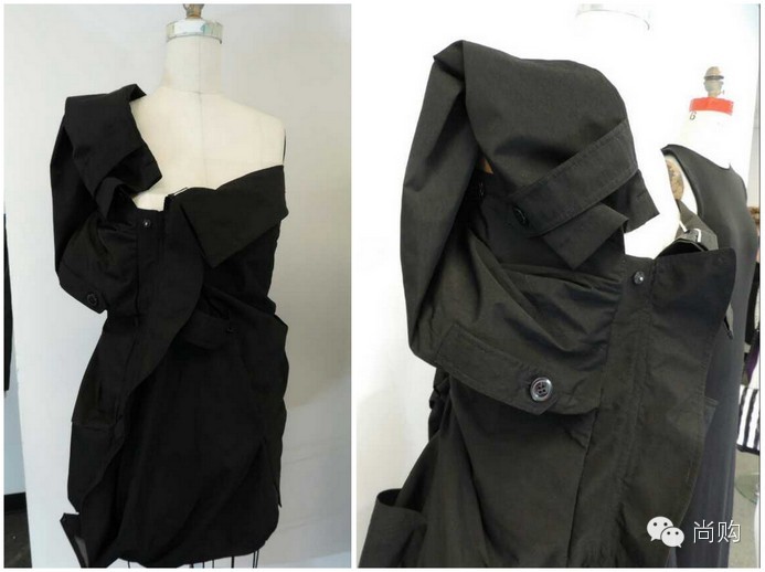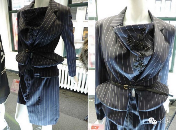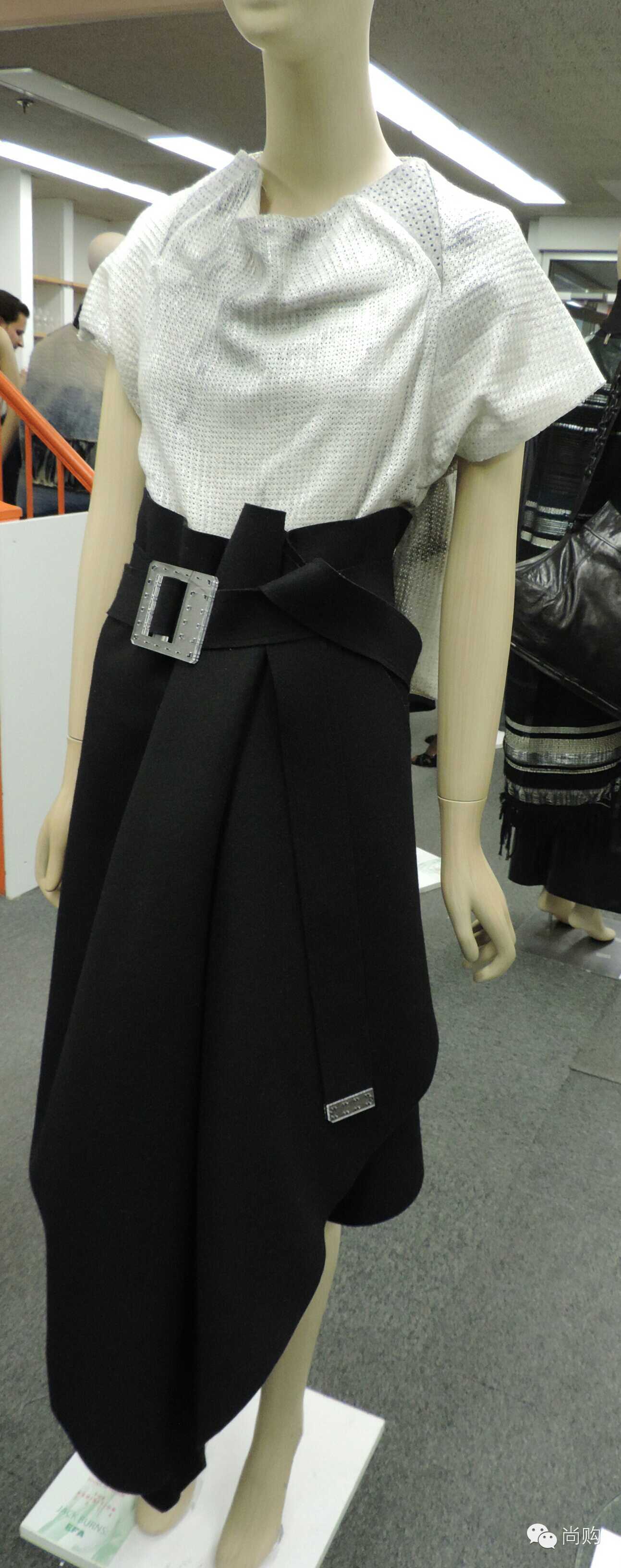 I think this piece would have a better market if it is either on plain black fabric with rhinestones or colored striped fabric or having strong contrast of graphic patterns without rhinestones. I don’t know whether it is because of the problem of cutting or of the mannequin, the clothing devoids of a soul.