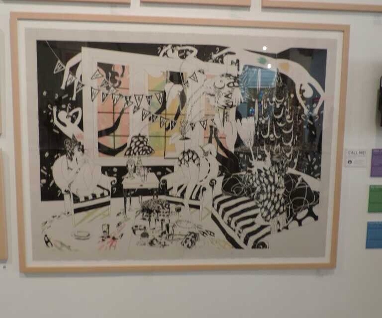 “Behind the Party”, which is a combination of collage and painting.