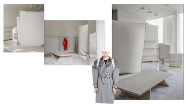 Moderator: I take Maison Margiela as an example and analyze their brand stores. The furniture in their shop has irregular geometry as if deliberately straying from the shape of the rules. In a physical store, walls and columns connect, but individuals of the building are separated. White walls, if touched by hand, will find that the walls consciously retain the natural texture of the plaster. These designs are echoing their brand’s design language, deconstruction, lining exposed, and so on are used.