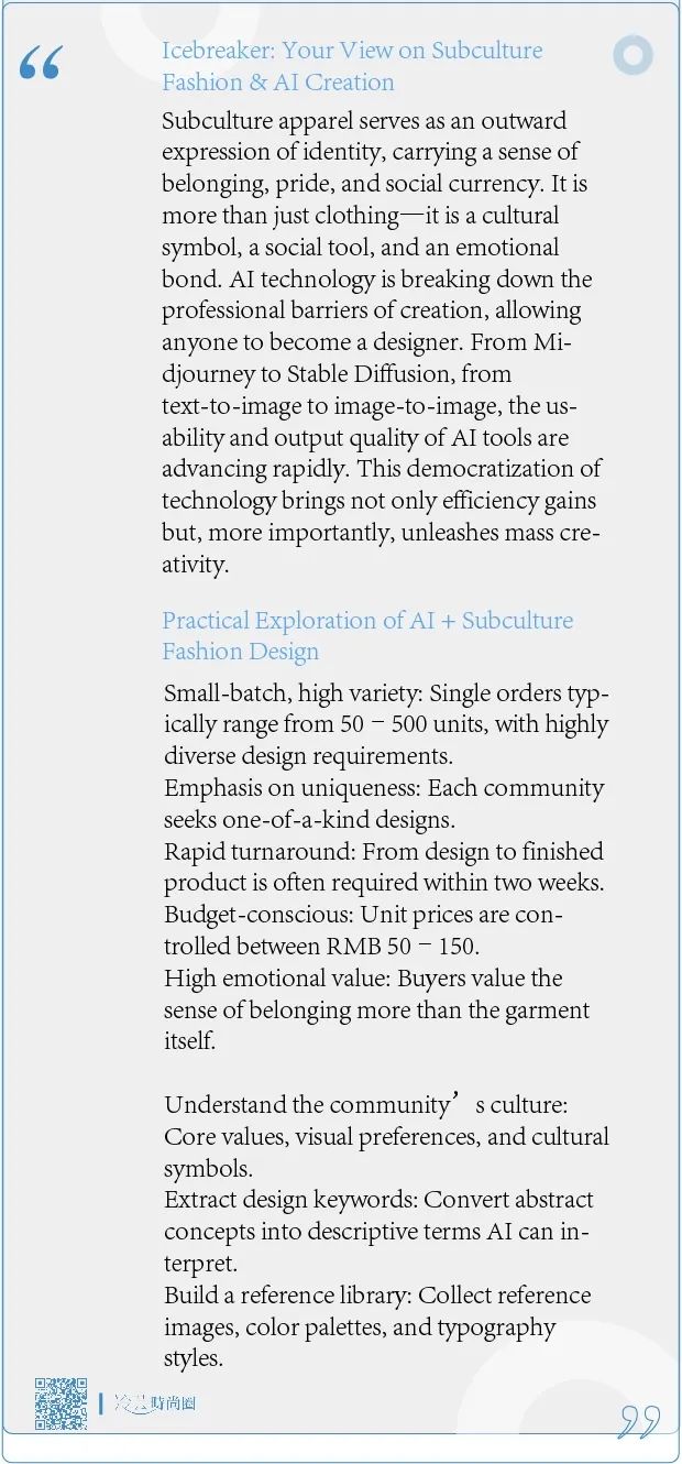 In practice, caution is advised when using AI-generated images. Avoid posting raw AI outputs directly on platforms like Xiaohongshu, as structural inaccuracies can harm professional credibility. A better approach is to use AI for creative sketches, then produce pattern breakdowns and conduct market research.
