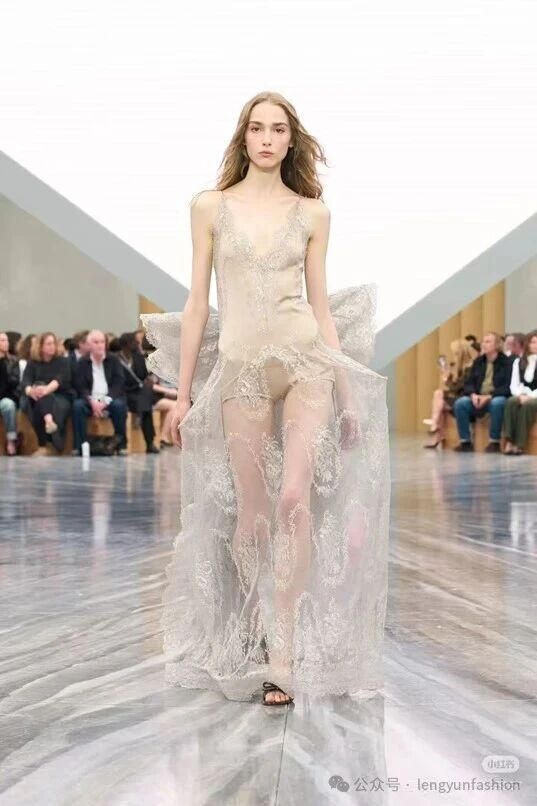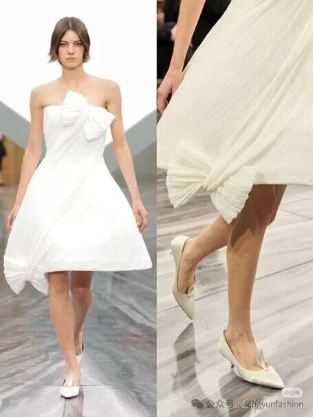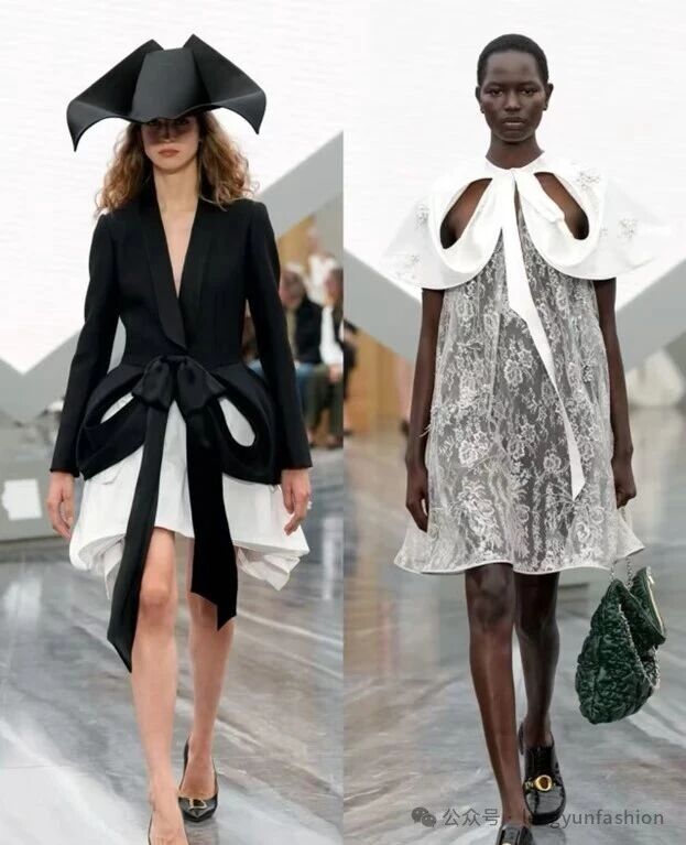 Bows appeared frequently in Dior SS26. While bows have been a trend for some time, Anderson’s treatment stood out. Rather than using bows as mere decoration, he integrated them structurally into hems and collars, making them part of the garment itself.